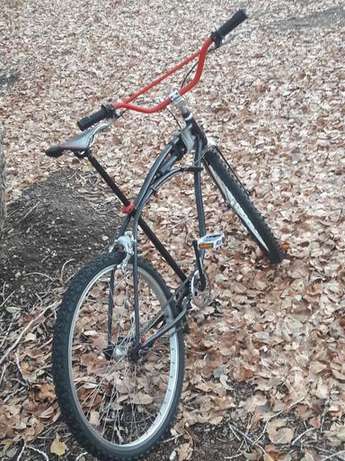 Keywords: schwinn bicycle speedster bike vehicle outdoor The rear brake braket was hard to design and get right. It was the second most difficult thing about this rebuild. It had to be shaped exactly and bent just so... to fit the rear fender bracket. Brakes are off an old BMX bike. Nice stoppers with new brake shoes. Seat post is now aluminum. The seat is a Zefal from Walmart, bought on sale. Handlebars are from a dirt bike motorcycle, cut back one inch per side. The rear brake braket was hard to design and get right. It was the second most difficult thing about this rebuild. It had to be shaped exactly and bent just so... to fit the rear fender bracket. Brakes are off an old BMX bike. Nice stoppers with new brake shoes. Seat post is now aluminum. The seat is a Zefal from Walmart, bought on sale. Handlebars are from a dirt bike motorcycle, cut back one inch per side.