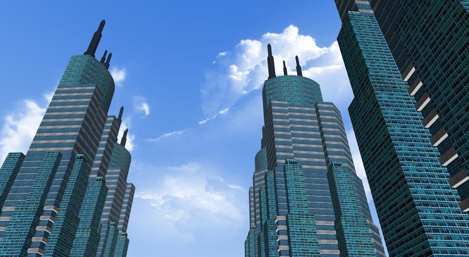 Keywords: city building sky cloud tower blue architecture cumulus clouds