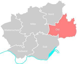 Keywords: City district Ost in Bochum.svg stadtbezirk Ost of the City of Bochum in North Rhine-Westfalia Stadtbezirk Ost der Stadt Bochum in Nordrhein-Westfalen own Vinom 2009-04-01 Mein Geschenk an die Welt Basiert auf <br> thumb left<br clear all > Maps of Bochum |