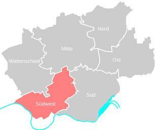 Keywords: City district Suedwest in Bochum.svg stadtbezirk Südwest of the City of Bochum in North Rhine-Westfalia Stadtbezirk Südwest der Stadt Bochum in Nordrhein-Westfalen own Vinom 2009-04-01 Mein Geschenk an die Welt Basiert auf <br> thumb left<br clear all > Maps of Bochum |