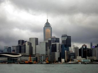 Keywords: city hong kong skyscraper building big city view skyline metropolis urban asia skyscrapers facades city view architecture homes home water townhouses sea port dark sky bad weather clouds sky