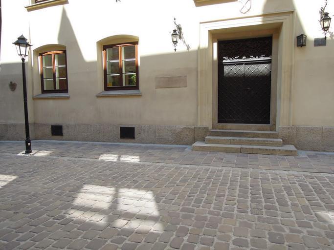 Keywords: city krakow cracow polish the land house building shadow old old building lamp streetlight window door street