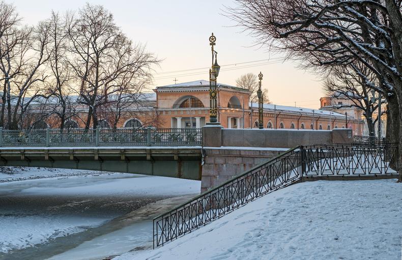 Keywords: city spb st petersburg russia winter beautiful cold beautiful building snow trees frosty city landscape branch white ice river channel bridge