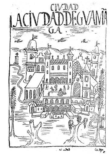 Keywords: Ciudad de Huamanga.jpg en Guaman Poma El primer nueva corónica y buen gobierno Felipe Guamán Poma de Ayala other versions PD-old-70-1923 Uploaded with UploadWizard Ayacucho