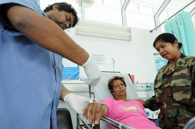 | Keywords: Civic assistance mission at Couva District Health Facility DVIDS126484.jpg en Cmdr Angelica Almonte a physician embarked aboard the amphibious assault ship USS Kearsarge comforts a patient while a Trinidadian doctor provides treatment at a local health facility during the humanitarian/civic assistance mission Continuing Promise 2008 Kearsarge is the primary platform for the Caribbean phase of CP an equal-partnership mission involving the United States Canada the Netherlands Brazil Nicaragua Colombia Dominican Republic Trinidad and Tobago and Guyana 2008-10-28 Petty Officer 2nd Class William Parker https //www dvidshub net/image/126484 081028-N-+++++-207 2008-11-05 03 55 COUVA TT PD-USGov-Military-Navy USS Kearsarge LHD-3 Images from DoD uploaded by Fæ |