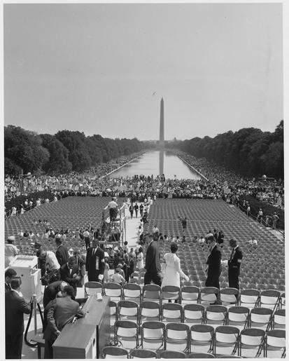| Keywords: Civil Rights March on Washington, D.C. (Marchers assembling at the Lincoln Memorial.) - NARA - 542046.tif Scope and content General notes 542046 Local identifier 306-SSM-4D 86 1 U S Information Agency Press and Publications Service ca 1953 - ca 1978 Still Picture Records Section Special Media Archives Services Division NWCS-S National Archives at College Park 8601 Adelphi Road College Park MD 20740-6001 1963-08-28 Record group Record Group 306 Records of the U S Information Agency 1900 - 2003 Record group ARC 622 Miscellaneous Subjects Staff and Stringer Photographs compiled 1961 - 1974 Series ARC 541992 File unit File unit ARC Variant control numbers NAIL Control Number NWDNS-306-SSM-4D 86 1 yes Other versions NARA-cooperation PD-USGov Washington Monument from the Lincoln Memorial Lincoln Memorial Reflecting Pool March on Washington for Jobs and Freedom |