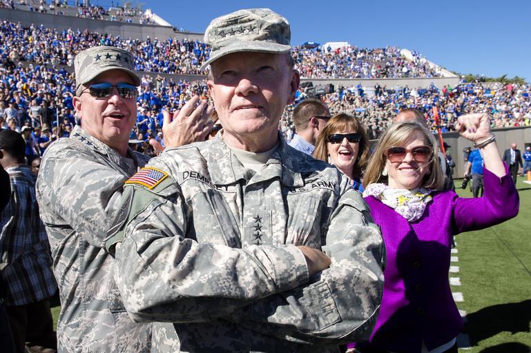 | Keywords: CJCS and VCJCS attend Warrior Games Tailgate and AF vs. Navy football 141004-D-HU462-371.jpg en Chief of Staff of the U S Air Force Gen Mark A Welsh III 18th Chairman of the Joint Chiefs of Staff Gen Martin E Dempsey and Deanie Dempsey watch as Air Force scores a touchdown during the Air Force vs Navy football game at the U S Air Force Academy's Falcon Stadium in Colorado Springs Colo Oct 4 2014 DOD photo by Army Staff Sgt Sean K Harp/Released 2014-10-04 Staff Sgt Sean Harp https //www dvidshub net/image/1604800 141004-D-HU462-371 2014-10-08 00 00 UNITED STATES AIR FORCE ACADEMY CO US PD-USGov Mark A Welsh III Martin E Dempsey Falcon Stadium Images from DoD uploaded by Fæ |
