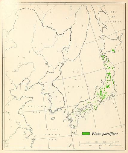 | Keywords: CL-13 Pinus parviflora.png en Map 13 Pinus parviflora distribution 1966-02 http //www biodiversitylibrary org/bibliography/66393 /summary Geographic distribution of the pines of the world Miscellaneous publication no 991 U S Department of Agriculture Forest Service Washington D C February 1966 William B Critchfield Elbert L Little Jr U S Department of Agriculture Forest Service PD-USGov Geographic Distribution of the Pines of the World Uploaded with UploadWizard Pinus parviflora | ||||