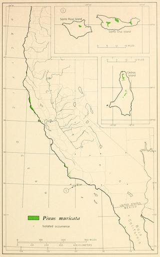 | Keywords: CL-59 Pinus muricata range map.png en Natural distribution map for Pinus muricata 1966-02 http //www biodiversitylibrary org/bibliography/66393 /summary Geographic distribution of the pines of the world Miscellaneous publication / United States Department of Agriculture ; no 991 William B Critchfield Elbert L Little Jr U S Department of Agriculture Forest Service PD-USGov Pinus muricata range maps Uploaded with UploadWizard Geographic Distribution of the Pines of the World | ||||