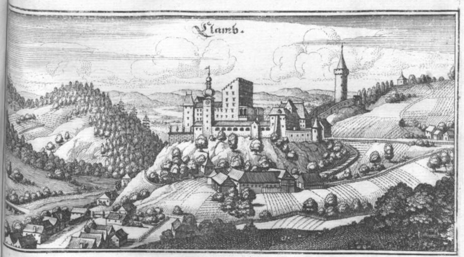 | Keywords: Clamb (Merian).jpg Series title Topographia Germaniae 10 3 1679 Frankfurt am Main Digitalisat der UB Düsseldorf http //digital ub uni-duesseldorf de/content/titleinfo/189687 Topographia Austriacarum Merian 007 jpg PD-old-100-1923 Other versions s de Topographia Provinciarum Austriacarum Engravings of Topographia Austriacarum Austria in art by Matthäus Merian Burg Clam Engravings of castles in Upper Austria | ||||