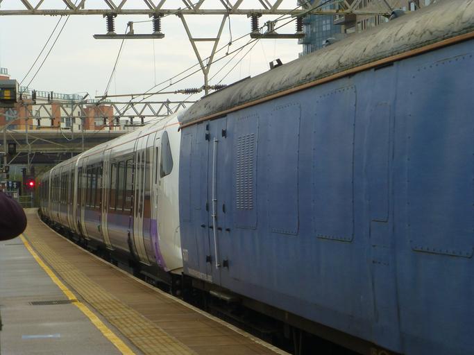 | Keywords: stratford station train railway class 345 class345 translator coach translatorcoach translator carriage translatorcarriage crossrail elizabeth line elizabethline vehicle outdoor The first Class 345 Crossrail Line (Elizabeth) train plus one of the translator carriages pass by platform 10a at Stratford station London whilst on their way to Ilford depot. The first Class 345 Crossrail Line (Elizabeth) train plus one of the translator carriages pass by platform 10a at Stratford station London whilst on their way to Ilford depot. The first Class 345 Crossrail Line (Elizabeth) train plus one of the translator carriages pass by platform 10a at Stratford station London whilst on their way to Ilford depot. stratford station train railway class345 translatorcoach translatorcarriage crossrail elizabethline Class345-Crossrail-Line1-FirstTrain-P1390640.jpg en The first Class 345 Crossrail Line 1 Elizabeth train and part of a translator carriage pass by platform 10a at Stratford station London Hauled by diesel locomotive 67 013 and with translator carriages at each end this journey was taking the brand new train to Ilford depot 2016-12-09 11 45 16 own Spsmiler other versions cc-zero Electric multiple units at Stratford station |