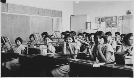| Keywords: Classes - NARA - 285443.jpg  Scope and content Home economics; girls cooking class; farm and blacksmith unit; engineering; institutional laundering; drawing; beadwork; Hopi basketry; woodworking; speech; agriculture; native Indian foods; food preparation General notes 285443 Local identifier Department of the Interior Bureau of Indian Affairs Pierre Agency 1954 - 1972 NARA's Central Plains Region Kansas City NREA 400 West Pershing Road Kansas City MO 64108 1934 - 1936 Record group Record Group 75 Records of the Bureau of Indian Affairs 1793 - 1999 Record group ARC 404 Pierre School Agency Photographs compiled 1911 - 1971 Series ARC 285400 File unit File unit ARC Variant control numbers NAIL Control Number NRE-75-PI PHO -278 Other versions <gallery> File Classes_-_NARA_-_285443 tif tif File Classes_-_NARA_-_285443 jpg jpg </gallery> NARA-cooperation PD-USGov Classrooms in the United States |