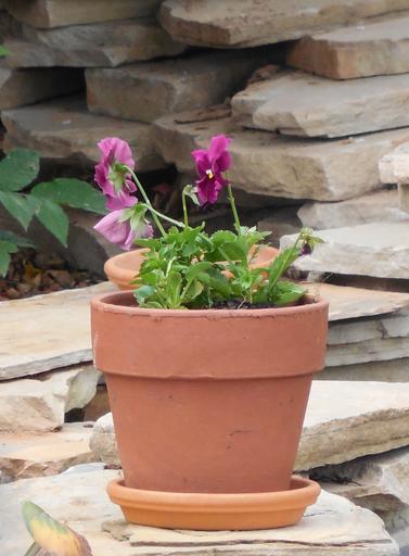 Keywords: clay pot flowers clay pot pottery plant garden decoration gardening ceramic flowerpot floral brown green hobby nature potted terracotta summer vase container design decorative rock stone outdoors ornament