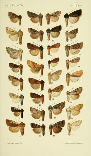 Keywords: CLBM 04 Pl73.png Euxoa marcida <small> Christ </small> Goniographa marcida <small> Christoph 1893 </small> ™‚ Persia Euxoa t-nigrum <small> Guen </small> Praina t-nigrum <small> GuenĂ©e 1852 </small> ™‚ Brazil Euxoa æquicuspis <small> Staud </small> Dichagyris multicuspis aequicuspis <small> Staudinger 1900 </small> ™‚ Mongolia Episilia panda <small> Leech </small> Raddea t-nigrum <small> Leech 1900 </small> ™‚ Western China Episilia bistrigata <small> Mssn </small> Agrotis bistrigata <small>Maassen 1890</small> ™ Ecuador Episilia terrifica <small> Smith </small> Protogygia elevata <small> J B Smith 1891 </small> ™‚ Colorado Episilia retracta <small> Hmpsn </small> Xestia retracta <small> Hampson 1903 </small> ™‚ Sikkim Sikhim Episilia flavicosta <small> Wllgrn </small> Caphornia flavicosta <small> Wallengren 1860 </small> ™ Patagonia Episilia fishi sic <small> Grote </small> Metalepsis fishii <small> Grote 1878 </small> ™ Maine Episilia cinerea <small> Staud </small> Xestia okakensis okakensis <small> Packard 1867 </small> ™‚ Labrador Episilia ceramophæa <small> Meyr </small> Agrotis ceramophaea <small>Meyrick 1899</small> ™‚ Hawaii Episilia loresi sic <small> Staud </small> Xestia lorezi lorezi <small> Staudinger 1891 </small> ™‚ Tyrol Tirol Episilia destituta <small> Leech </small> Xestia destituta <small> Leech 1900 </small> ™‚ Western China Episilia homochroma <small>Hmpsn </small> Xestia homochroma <small> Hampson 1903 </small> ™‚ Tibet Episilia cinerascens <small> Smith </small> Xestia cinerascens <small> Smith 1891 </small> ™‚ Washington Episilia stridula <small> Staud sic</small> Chersotis stridula <small> Staudinger 1896 </small> ™‚ Central Asia W Turkestan Episilia voccei sic <small> Möschl </small> Xestia wockei <small> Möschler 1862 </small> ™‚ New Hampshire Episilia præcipua <small> Staud </small> Chersotis praecipua<sup>verification needed</sup> <small> Staudinger 1895 </small> ™‚ Eastern Siberia Episilia modesta <small> Staud non Moore 1881 preoccupied </small> ™‚ Tibet Episilia isochroma <small>Hmpsn </small> Xestia isochroma <small> Hampson 1903 </small> ™‚ Tibet Episilia argillacea <small> Alph </small> Perissandria argillacea <small> Alpheraky 1892 </small> ™‚ Tibet Episilia violetta <small> Staud </small> Parexarnis violetta <small> Staudinger 1888 </small> ™‚ Central Asia W Turkestan Episilia alaina <small> Staud </small> Rhyacia junonia alaina <small> Staudinger 1888 </small> ™‚ Central Asia W Turkestan Episilia ignobilis <small> Staud </small> Rhyacia ignobilis <small> Staudinger 1888 </small> ™‚ Central Asia W Turkestan Episilia subplumbea <small> Staud </small> Trichosilia subplumbea <small> Staudinger 1895 </small> ™‚ Tibet Episilia diplogramma <small>Hmpsn </small> Rhyacia diplogramma <small> Hampson 1903 </small> ™‚ Central Asia W Turkestan Episilia monogramma <small>Hmpsn </small> Protexarnis monogramma <small> Hampson 1903 </small> ™‚ Kashmir Episilia tiniloides <small> Dognin </small> Tandilia tiniloides <small>Dognin 1897</small> ™ Ecuador Episilia amina <small> Dognin </small> ™ Ecuador Lycophotia perigrapha <small> PĂĽng </small> Xestia perigrapha <small> PĂĽngeler 1899 </small> ™‚ Tibet Lycophotia lutescens <small> Ev </small> Yigoga lutescens <small> Eversmann 1844 </small> ™‚ Urals Lycophotia achromatica <small>Hmpsn </small> Agrotis achromatica <small> Hampson 1903 </small> ™‚ Brazil Catalogue of Lepidoptera Phalænæ in the British Museum http //www archive org/details/catalogueoflepid41903brit Vol 4 Noctuidæ http //www archive org/details/catalogueoflepid48brit Plate LXXIII George F Hampson ed 1903 PD-old <gallery> File CATALOGUE-BM-PLATE LXXIII jpg Smaller version </gallery> Xestia lorezi lorezi - Hampson png Xestia retracta - Hampson png Xestia wockei - Hampson png Catalogue of Lepidoptera Phalaenae in the British Museum Vol 4 Unidentified Noctuidae Goniographa marcida Dichagyris multicuspis Agrotis Protogygia Xestia retracta Xestia okakensis Xestia lorezi Xestia destituta Xestia homochroma Xestia cinerascens Xestia wockei Xestia isochroma Xestia perigrapha Chersotis Rhyacia Protexarnis |