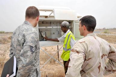 | Keywords: Clear Skies Forecasted, CJTF-HOA Meteorologists Share Technology With Djibouti DVIDS202533.jpg en Mr Said Darar chief of climatologic data for Djibouti shows U S Air Force Tech Sgt David Giddens and U S Navy Lt Cmdr Ricardo Trevino weather forecasting instruments at the Ambouli International Airport in Djibouti Sept 5 Giddens a member of the Washington Air National Guard and native of Jacksonville Fla and Trevino head of Combined Joint Task Force-Horn of Africa's Meteorological and Oceanographic Department and a native of Bayamon Puerto Rico were at the airport to install a high-frequency line-of-sight antenna that will allow Djiboutian weather forecasters to receive a steady stream of information from CJTF-HOA's AN/TMQ-53 Tactical Meteorological Observing System <br>Unit Combined Joint Task Force - Horn of Africa 2009-09-05 Petty Officer 1st Class Jonathan Kulp https //www dvidshub net/image/202533/clear-skies-forecasted-cjtf-hoa-meteorologists-share-technology-with-djibouti 090905-N-+++++-020 2009-09-09 13 01 DJIBOUTI DJ PD-USGov-Military-Navy Combined Joint Task Force - Horn of Africa Images from DoD uploaded by Fæ |
