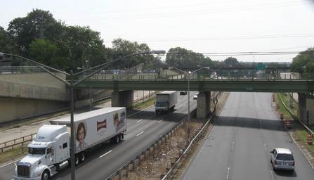 | Keywords: Clearview expwy LIRR jeh.JPG en Looking south from 36th Avenue overpass at en Clearview Expressway and LIRR Port Washington Branch on a mostly clear late Sunday morning Beyond the railroad bridge is a footbridge Own Jim henderson 2008-09-14 40 45 46 7 N 73 46 45 4 W heading SEbS Port Washington Branch Long Island Rail Road Interstate 295 New York Railway bridges in New York City Footbridges in New York City | ||||