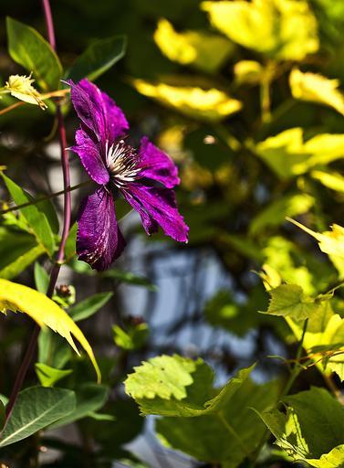 Keywords: clematis flower plant plant a garden nature garden purple flower summer perennials foliage petals ornamental plants green large flowers closeup sunny inside a flower