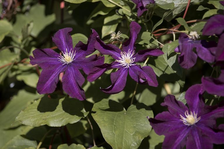Keywords: clematis violet blossom bloom climber close garden nature bloom dark purple garden plant flowers