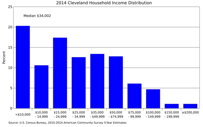 MAKE A MEME View Large Image Cleveland household income distribution.svg translate yes en Distribution of household income in Cleveland Ohio in 2014 Data from http //factfinder census gov/bkmk/table/1 0/en/ACS/14_5YR/DP03/1600000US3916000 US Census in 2014 inflation ...