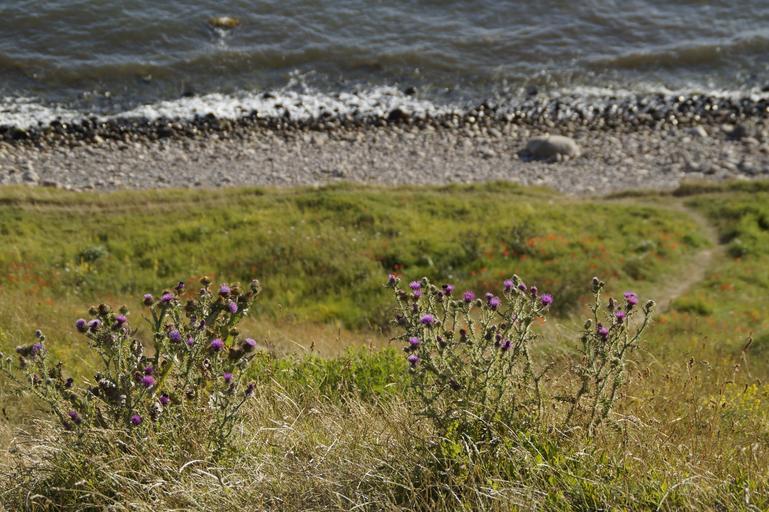 Keywords: cliff steep coast sloping sweden baltic sea thistles fouling grass sea bank water sea beach sea shore waters