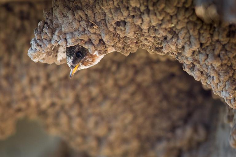 Keywords: cliff swallow bird wildlife nature home looking beak outdoors close up migratory mud nest