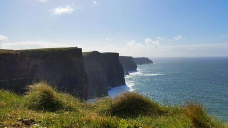 Keywords: cliffs blue green landscape ireland water sky ocean coast irish atlantic scenic coastline scenery travel rock nature grass beach moher