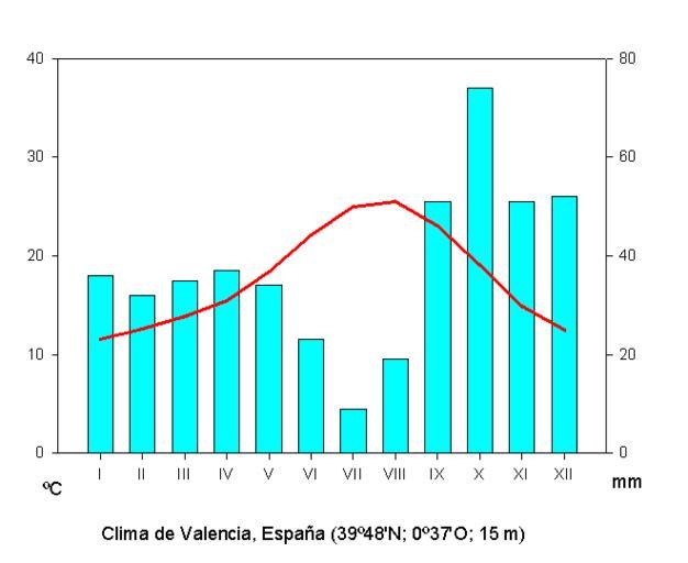 Keywords: Clima Valencia.png Data taken from the spanish page of Valencia ciudad 2005-09-14 own assumed Diotime Climate diagrams of Spain Climate of Valencia