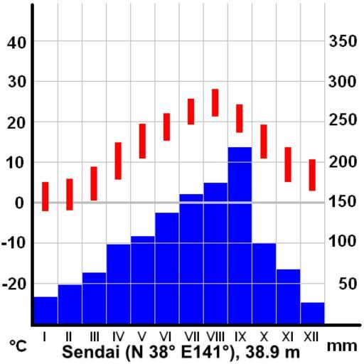 | Keywords: ClimateSendaiJapan.png Climate diagram of Sendai Japan Map based Image ClimateTemplate PNG Source http //www data jma go jp/obd/stats/etrn/view/nml_sfc_ym php prec_no 34 prec_ch 8B 7B 8F E9 8C A7 block_no 47590 block_ch 90 E5 91 E4 year month day elm normal view JMA data 2007-03-06 own assumed Pekachu Created with Inkscape Climate diagrams of Japan Sendai Miyagi |