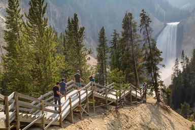 Keywords: grand canyon of the yellowstone grandcanyonoftheyellowstone lower falls lowerfalls outdoor Descending steps to Red Rock Point; Neal Herbert; August 2015; Catalog #20295d; Original #ndh-yell-0780 Descending steps to Red Rock Point; Neal Herbert; August 2015; Catalog #20295d; Original #ndh-yell-0780