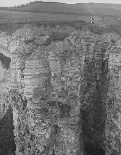 Keywords: Climbing Hateley Shute YORYM-S164.jpg View of the top of part of the cliffs at Bempton where there are buttresses and chimneys At the top two men can be seen with a rope running down to the cliff top from them They are in shirt-sleeves but are too small to see in detail There is probably a climber on the cliff face but he cannot be picked out Hateley Shute is presumably one of the chimneys depicted people depicted place 1900-1912 glass plate negative 125mm long edge x 100mm short edge institution Yorkshire Museum object history exhibition history credit line accession number YORYM S164 York Museums Trust image PD-old-70-1923 PD-US Images from The Sydney Harold Smith Collection Flamborough Head Cliffs of the East Riding of Yorkshire Fields in the East Riding of Yorkshire History of Flamborough Black and white photographs of England Uploaded with UploadWizard |