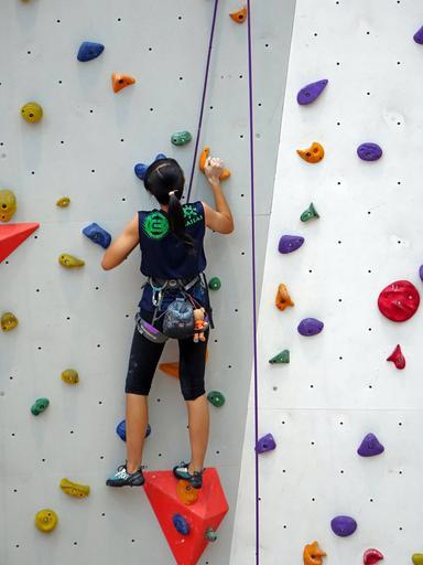 Keywords: climbing rope rappelling wall rock extreme sport activity recreation indoors training strength concentration bodybuilding equipment