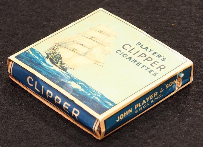 Keywords: Clipper cigarettes pack, pic4.JPG Very old packaging of a product that is not produced and not sold any more own 2014-04-13 11 10 43 Alf van Beem CC-Zero Trademarked Clipper cigarettes Cigarette packs