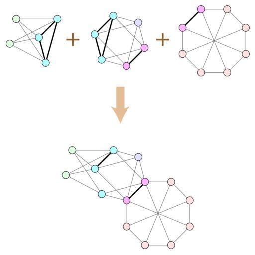 Keywords: Clique-sum.svg A clique-sum of two planar graphs and the Wagner graph forming a K<sub>5</sub>-minor-free graph Own 2008-05-24 David Eppstein Graph theory Files by User David Eppstein from en wikipedia