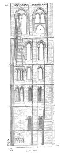 | Keywords: Clocher.cathedrale.Rouen.png Si à Chartres un architecte de l'Île-de-France a conçu et présidé à l'exécution du clocher vieux à Rouen il est très-probable qu'un de ses confrères a conçu et fait élever le clocher de la cathédrale connu sous le nom de tour Saint-Romain Le clocher de Saint-Romain de la cathédrale de Rouen est contemporain du clocher vieux de Chartres 1140 à 1160 Le couronnement primitif de ce clocher n'existe plus ou ne fut jamais élevé Il devait se composer probablement d'une grande pyramide octogone comme celle qui termine l'escalier du même clocher Viollet-le-Duc Bell Tower Viollet-le-Duc Plans of Cathédrale Notre-Dame de Rouen |