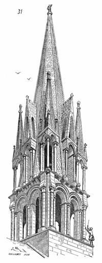 | Keywords: Clocher.Vernouillet.2.png Les clochers centrals du XII<sup>e</sup> siècle sont fort rares dans cette partie de la France dévastée par les guerres de la fin de ce siècle; aussi celui de Vernouillet qui clôt l'époque de transition doit-il être étudié avec attention Il se compose d'une base carrée sans ouverture portant sur les quatre piles de la croisée et sur les quatre arcs doubleaux Le beffroi à jour s'élève sur ce socle; ses angles sont renforcés de colonnes engagées formant contreforts; les quatre faces sont percées chacune de deux baies Viollet-le-Duc Bell Tower Viollet-le-Duc Église Saint-Étienne de Vernouillet |