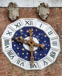 Keywords: clock time tower pointer hours time of minutes blue mechanics transmission gear technology close mechanical stainless metal wall stone wall old building