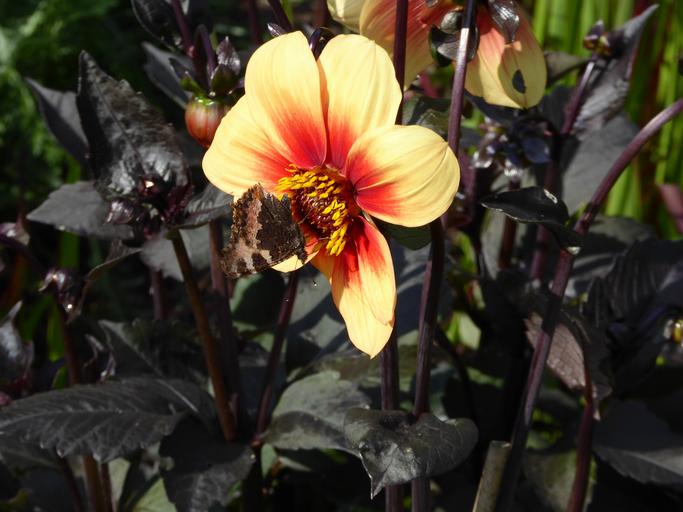Keywords: close blossom bloom yellow orange ornamental garden botany butterfly flower bed spring