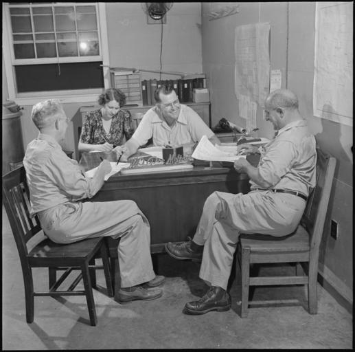 Keywords: Closing of the Jerome Relocation Center, Denson, Arkansas. W. H. Jenkins, left, motor pool superint . . . - NARA - 539738.jpg Scope and content The full caption for this photograph reads Closing of the Jerome Relocation Center Denson Arkansas W H Jenkins left motor pool superintendent; Fritz A Zuendt transportation superintendent meet with W O Melton assistant project director to discuss transportation problems incident to the moving of Jerome residents Eva Keavney secretary to Malcolm Pitts of the Denver Field Office assists General notes 539738 Local identifier 210-G-I158 Department of the Interior War Relocation Authority 02/16/1944 - 06/30/1946 NARA-Author Iwasaki Hikaru 1923- Photographer 8464103 <br /> Still Picture Records Section Special Media Archives Services Division NWCS-S National Archives at College Park 8601 Adelphi Road College Park MD 20740-6001 1944-06-12 Record group Record Group 210 Records of the War Relocation Authority 1941 - 1989 Record group ARC 537 Central Photographic File of the War Relocation Authority compiled 1942 - 1945 Series ARC 536000 File unit File unit ARC Variant control numbers NAIL Control Number NWDNS-210-G-I158 Other versions <gallery> File Closing_of_the_Jerome_Relocation_Center _Denson _Arkansas _W _H _Jenkins _left _motor_pool_superint_ _ _ _-_NARA_-_539738 tif tif File Closing_of_the_Jerome_Relocation_Center _Denson _Arkansas _W _H _Jenkins _left _motor_pool_superint_ _ _ _-_NARA_-_539738 jpg jpg </gallery> NARA-cooperation PD-USGov Denson Arkansas