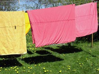 Keywords: clothes line laundry meadow summer hang laundry color depend clamp dry laundry out colorful lingerie shadow yellow red sheet bed linen duvet cover