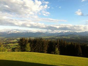 Keywords: clouds alpine mountain meadow panorama