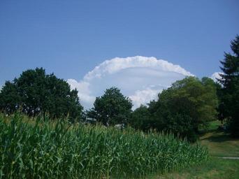 Keywords: clouds clouds arc sky blue cornfield green corn field trees nature