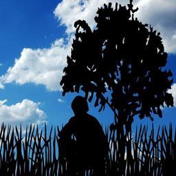 Keywords: clouds man tree sky person nature male outdoor blue view crouching kneeling squatting silhouette