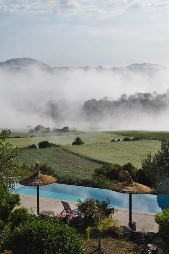 Keywords: clouds mountains nature pool landscape fog sky mallorca silent mood atmosphere scenic trees selva marine holiday