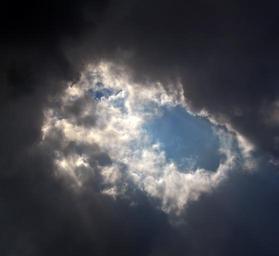 Keywords: clouds sky miracle blue radiating lights darkness dark bright brightness eye strange eye mystery
