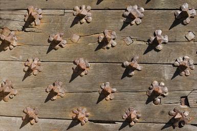 Keywords: Clous porte Château de Hautefort 6.jpg fr Clous de renfort de la porte d'entrée détail Château de Hautefort Dordogne en Detail of the nails at the main entry gate of Château de Hautefort Dordogne France 2013-08-13 17 10 09 own Jebulon PA00082575 classé Fr cc-zero QualityImage Uploaded with UploadWizard Gates in Dordogne Spikes Wood textures Château de Hautefort Quality images by Jebulon Quality images from Wiki Loves Monuments 2013