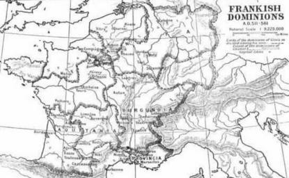 MAKE A MEME View Large Image ClovisDomain.jpg <u>IMAGE TITLE</u> Frankish Domains 511-561 BW Source Gregory of Tours History of the Franks trans Ernest Brehaut New York Columbia University Press 1916 Public domain image digitized version from http //www fordham edu/...