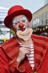 Keywords: clown comedian nose circus funny laugh make-up face grinning grimace snoot red nose cabaret artist cabaret artiste artist arts people man teeth grin
