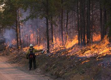 | Keywords: cnnf outdoor landscape forest Chequamegon-Nicolet National Forest wildland firefighters and a team from the Midewin Interagency Hotshot Crew conducted a 3,400-acre prescribed burn in the Moquah Barrens north of Ino, Wisconsin, May 22 and 23. The project was divided into several separate units to reduce hazardous fuel loads, encroaching shrubs and trees, improve wildlife habitat and promote barrens native plant species. The burn is one of the management techniques that the Forest Service is using to restore the globally imperiled pine barrens ecosystem at Moquah Barrens. This ecosystem has evolved naturally over time with fire being the key component in maintaining its biological integrity. This ecosystem is characterized by large open areas and barrens featuring a mixture of grasses, shrubs and scattered trees as well as areas Chequamegon-Nicolet National Forest wildland firefighters and a team from the Midewin Interagency Hotshot Crew conducted a 3,400-acre prescribed burn in the Moquah Barrens north of Ino, Wisconsin, May 22 and 23. The project was divided into several separate units to reduce hazardous fuel loads, encroaching shrubs and trees, improve wildlife habitat and promote barrens native plant species. The burn is one of the management techniques that the Forest Service is using to restore the globally imperiled pine barrens ecosystem at Moquah Barrens. This ecosystem has evolved naturally over time with fire being the key component in maintaining its biological integrity. This ecosystem is characterized by large open areas and barrens featuring a mixture of grasses, shrubs and scattered trees as well as areas |