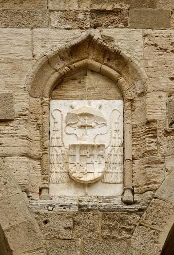 Keywords: CoA Pierre d'Aubusson Grand Master Rhodes.jpg Pierre d'Aubusson 40th Grand-Master of the Order of the Hospitallers of Saint-John of Jerusalem Knights of Rhodes elected 17th June 1476-died 3rd July 1503 The Shield of Christianity Pierre d'Aubusson 40ème Grand-Maître de l'Ordre des chevaliers hospitaliers de Saint-Jean de Jérusalem Chevaliers de Rhodes Ecartelé aux 1 et 4 de la Religion c'est-à-dire de gueules à croix d'argent ; aux 2 et 3 d'or à une croix ancrée de gueules Dans le Musée du Palais de Versailles on conserve son tombeau d'un style très élégant Pour la première fois l'écu du Grand Maître y est écartelé avec celui de l'Ordre coutume qui sera suivie par tous ces successeurs Il est surmonté d'un chapeau de cardinal D'abord Grand-Prieur d'Auvergne Pierre d'Aubusson d'une très ancienne famille issue des vicomtes de la Marche fut élevé à la dignité suprême de l'Ordre le 17 juin 1476 ; il eut à soutenir un terrible siège de l'armée turque et fut même grièvement blessé sur la brêche 1480 Le pape Innocent VIII réunit au chapitre de Rhodes ceux du St Sépulcre et de St Lazare ; d'Aubusson reçut le chapeau de cardinal et prit le titre de Grand-Maître du St Sépulcre Surnommé le Bouclier de la Chrétienté il mourut le 3 juillet 1503 Source own Jebulon 2011-04-14 Cc-zero QualityImage Heraldry of the Medieval city of Rhodes Reliefs of coats of arms in Greece Pierre d'Aubusson GM 40 Quality images by Jebulon Gothic windows in Greece Renaissance reliefs in Greece