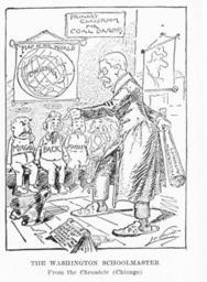 Keywords: CoalBarons.JPG The Washington Schoolmaster An editorial cartoon about the w Coal strike of 1902 a strike by the United Mine Workers of America in the anthracite coal fields of eastern Pennsylvania In the cartoon a sign on the wall states Primary Classroom for Coal Barons and a world map shows a disproportionately large state of Pennsylvania President Theodore Roosevelt intervened in the strike and the cartoon depicts him as poised to dole out punishment to industry; he is holding a Switch corporal punishment switch labeled Federal Authority Shown on the bench are industry leaders financier J P Morgan; George F Baer President of the Philadelphia and Reading Railroad; and two coal company executives John Markle G B Markle Co and T P Fowler Scranton Coal Co Elk Hill Coal Iron Co Chicago Chronicle 1902 Charles Lederer 1856-1925 cartoonist PD-old-100 Original upload log en wikipedia Coal JPG 2006-03-29 03 30 Rjensen 744×1012× 166930 bytes <nowiki>US cartoon 1902</nowiki> Coal Strike of 1902 1900s political cartoons of the United States 1902 cartoons Caricatures of Theodore Roosevelt J P Morgan banker Newspapers of Chicago |
